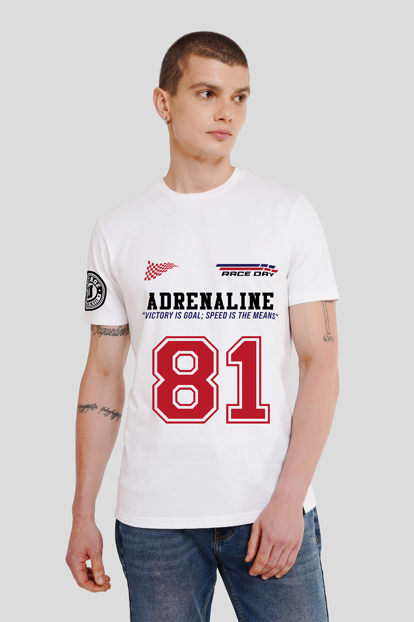 Adrenaline White Regular Fit Graphic T-shirt Men is made for the speed seekers and street racers at heart. The front print captures a bold, high-octane racer aesthetic that instantly elevates your look. Crafted from lightweight, breathable cotton in a regular fit, it?s designed to keep you comfortable while showing off every detail of the design.