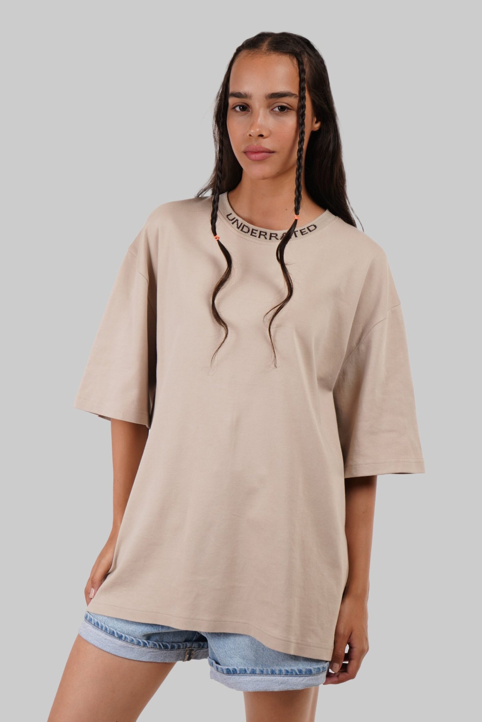 The Beige Interlock Fabric Oversized T-shirt for Women is a versatile and comfortable wardrobe essential. Crafted from soft interlock fabric, this oversized t-shirt offers a relaxed fit with a touch of luxury. The timeless beige color adds a sophisticated and understated appeal, making it suitable for various occasions. Whether worn casually with jeans for a laid-back look or layered under a jacket for a more polished ensemble, this oversized t-shirt is perfect for everyday wear and effortless style.