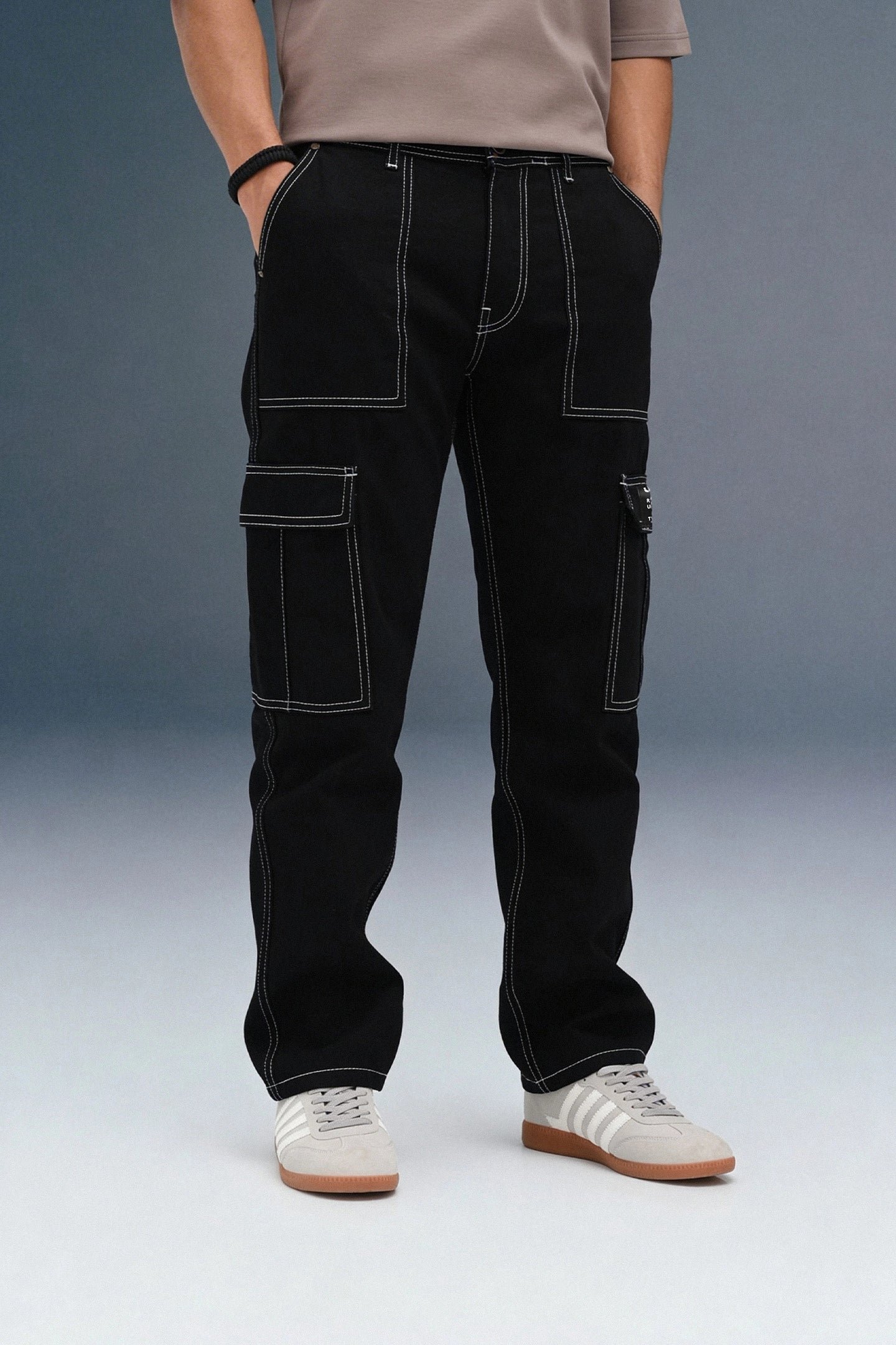Add a stylish edge to your wardrobe with our Black Cargo Jeans for Men. These cargos feature a regular fit and high-rise waist, constructed from comfortable cotton fabric. The black denim and contrast detailing create a distinctive look, blending urban style with practicality for any casual occasion