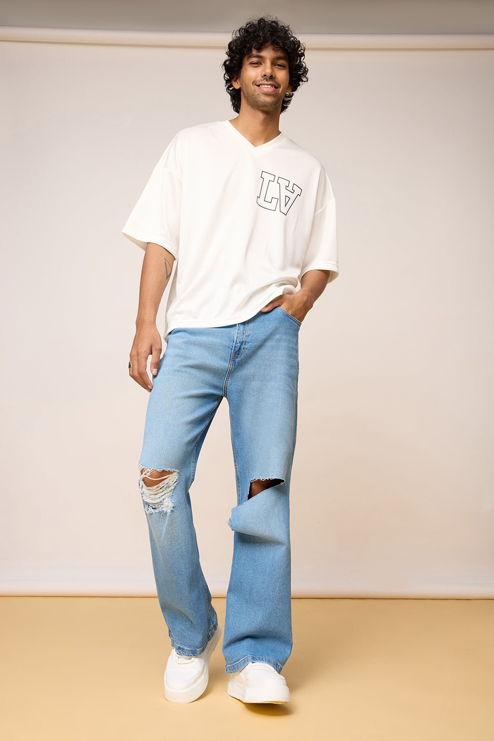 Description: Step up your denim game with our Blue Knee Distressed Men’s Wide Leg Jeans. Perfectly crafted for a bold look, these jeans feature edgy knee distressing that adds a rebellious twist to your outfit. Designed with a charming wide-leg cut, they offer both comfort and style, making them your go-to for a laid-back yet fashionable look.