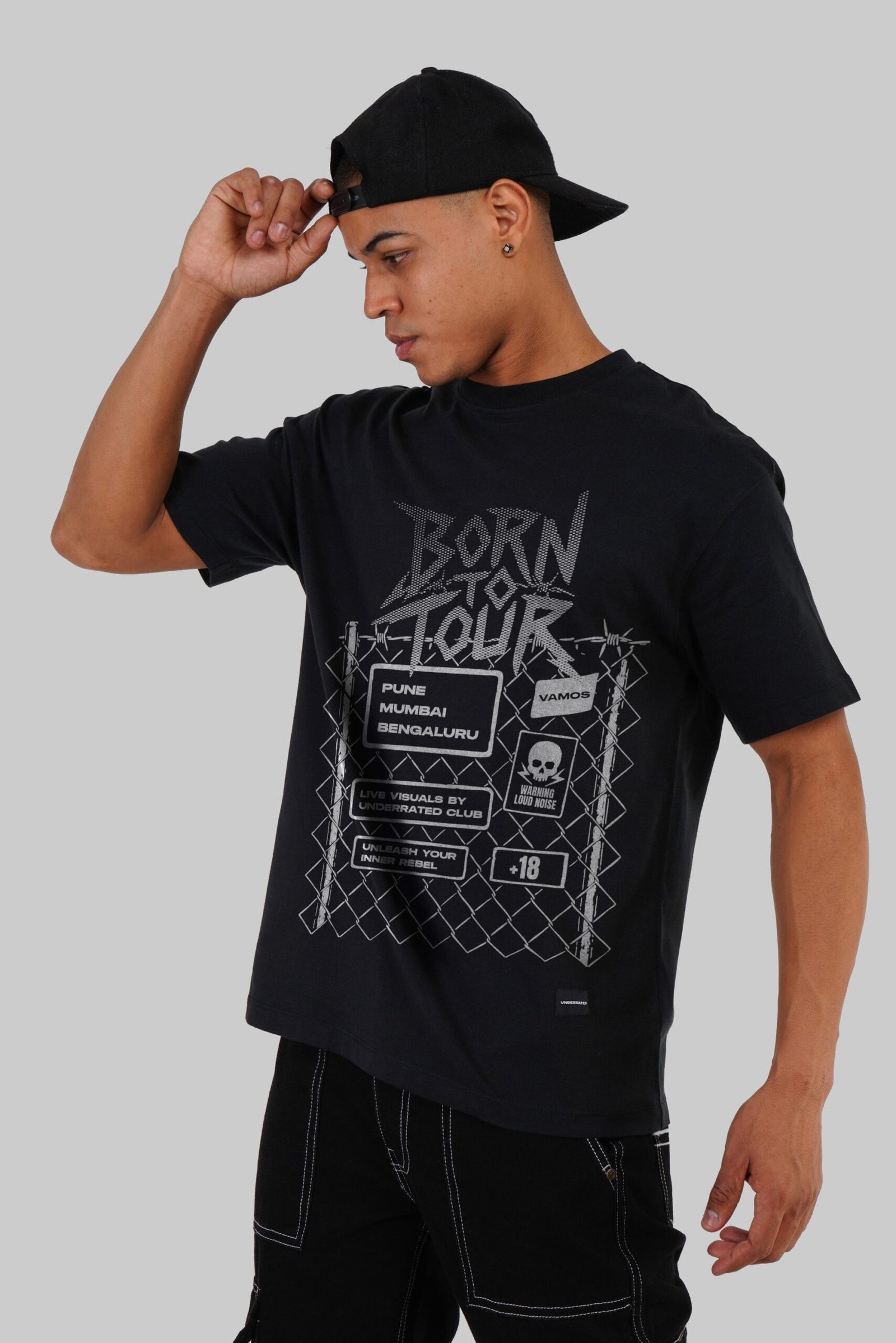 What if your playlist’s appearance resembled that of your t-shirt? Noisy. Uncensored. Almost legendary. This oversized men’s black t-shirt makes a statement rather than a whisper in terms of fashion. The front print is a chaotic map of energy, sound & rebellion, modeled after vintage tour posters and underground concert flyers. Every visual aspect – barbed wire images, 18+ labels & loud noise alerts – strikes like a drumbeat. This oversized black t-shirt, made of fine, soft material that feels like a second skin, was designed for lengthy discussions and lengthy evenings. Its loose fit and dropped shoulders are intended to accompany you from town to town, scene to scene. Do you have any fashion advice? Wear large cargo pants, a crossbody bag & sunglasses with dark rims. You’re wearing a tour date from a life lived out, not simply a tee.