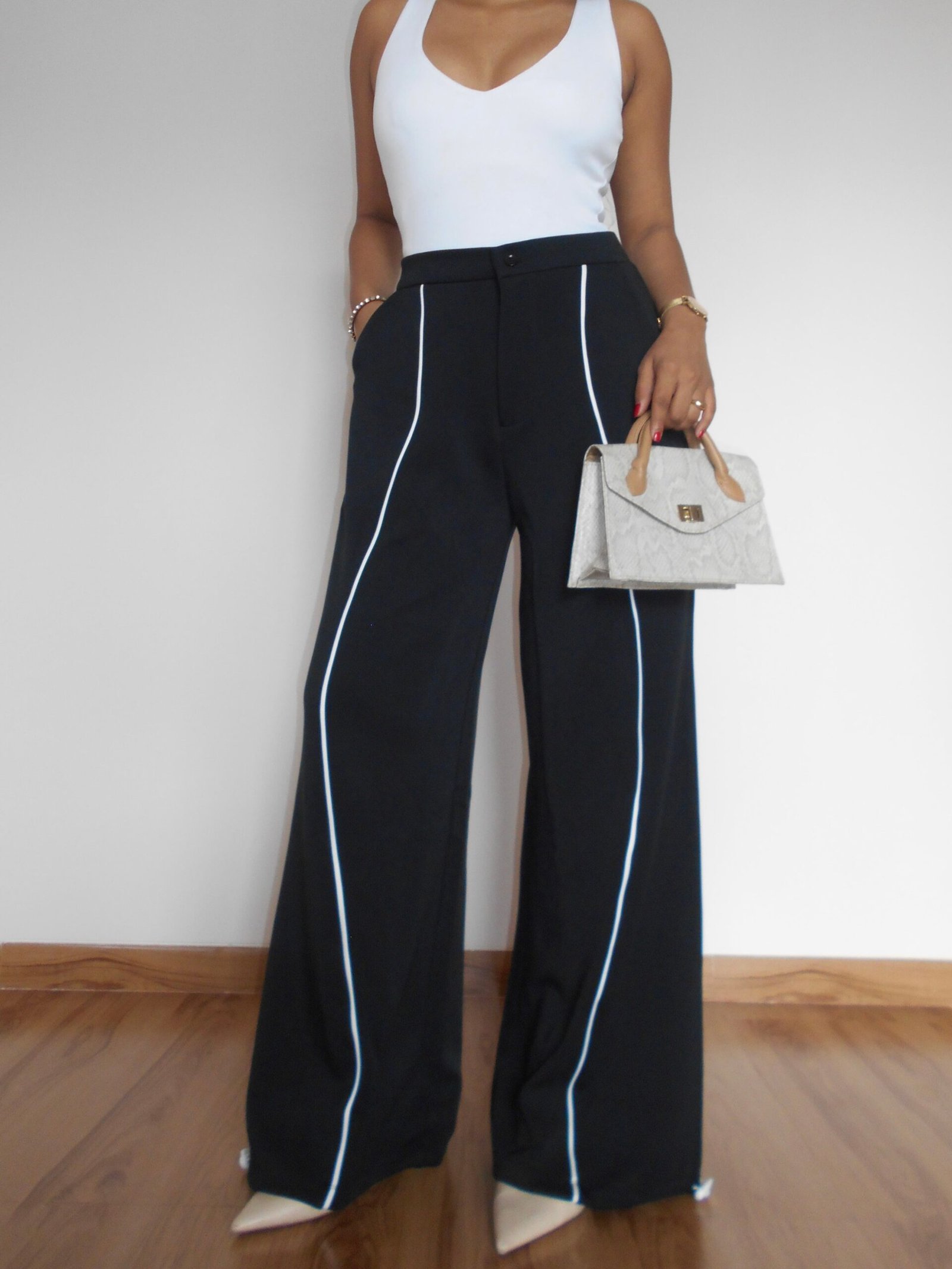 Effortless Comfort, Elevated DetailStep into relaxed style with these wide-leg joggers, designed for both comfort and modern edge. Featuring cloud-contrast panels, subtle piping details, and an adjustable drawstring at the hem, they bring a sporty-chic aesthetic to everyday wear. Crafted from UltraFlex Sculpt Knit, these joggers offer a soft, structured feel with stretch and breathability?ensuring a sculpted fit and all-day comfort.Product Details? Fit: Wide-leg, relaxed silhouette with adjustable drawstring hem? Details: Cloud-contrast panels, piping accents, elastic waistband, functional side pockets? Fabric: UltraFlex Sculpt Knit? Composition: 45% Cotton Rayon, 50% Polyester, 5% Spandex? Weight: 280 GSM? Construction: Knitted? Feel: Soft, structured, stretchable, and breathable for flexible movement and all-day comfort? Styling Tip: Pair with a cropped tee and sneakers for casual street style, or layer with a fitted top and heels for a chic, elevated look