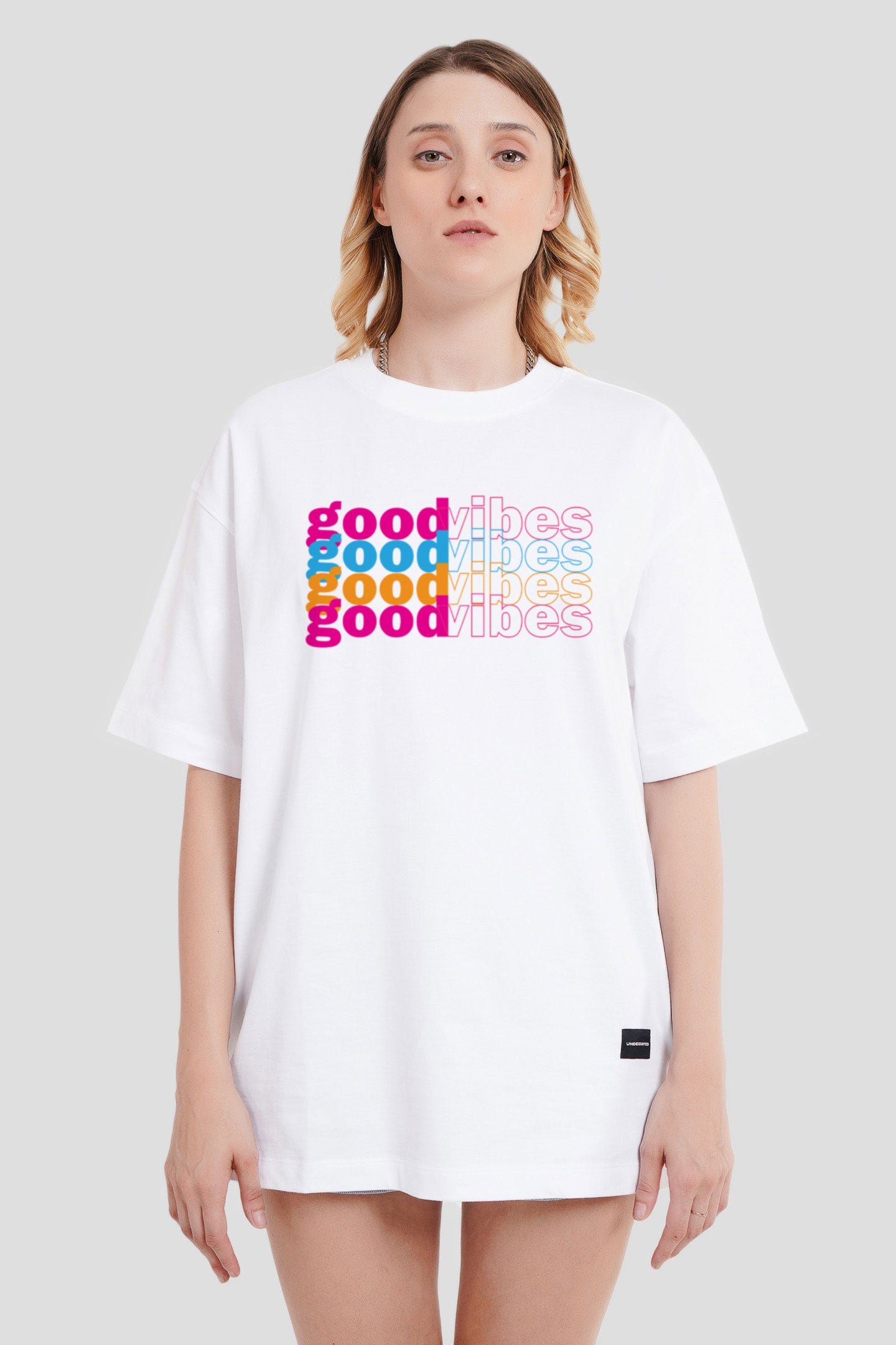 Ditch the boring basics and rep your positivity loud and proud with our Women’s Oversized Fit graphic tee. Made from 100% cotton for ultimate breathability on those long lecture days, this white tee features a massive “GOOD VIBES” print that lets everyone know you’re spreading chillness wherever you roam. The relaxed silhouette creates a statement look that’s perfect for turning heads (and spreading good vibes) between classes, at the student union or at that epic frat party.