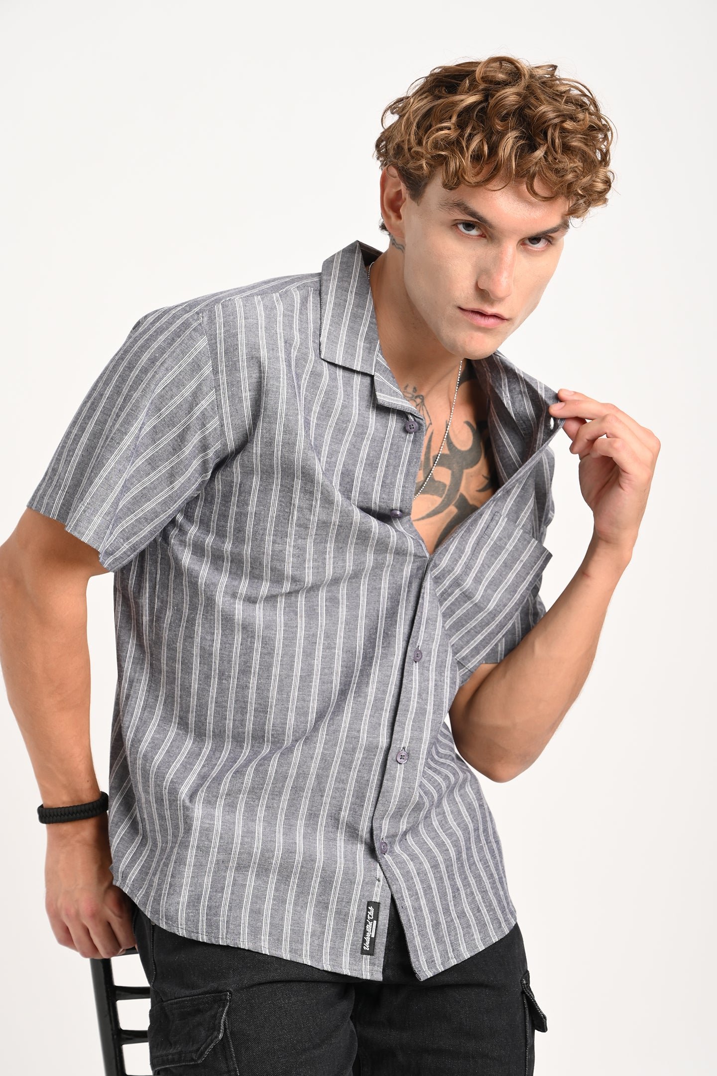 Introducing our Grey Textured Stripe Half Sleeves Shirt for Men, a must-have for your wardrobe. This shirt blends classic charm with contemporary style, crafted from premium cotton fabric in a comfortable Regular Fit. The Camp Collar design enhances its laid-back appeal, perfect for effortless transitions from office hours to after-work drinks. Versatile and timeless, this shirt ensures you stay cool and confident, no matter the occasion.