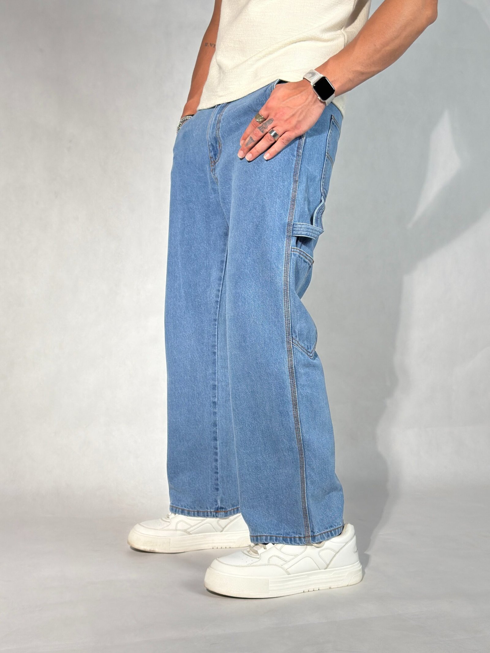 Workwear Roots. Streetwear Edge.These carpenter jeans merge utility function with clean, structured design. With side utility pockets, a classic hammer loop, and a roomy relaxed fit, they nod to traditional workwear while staying effortlessly street-ready.