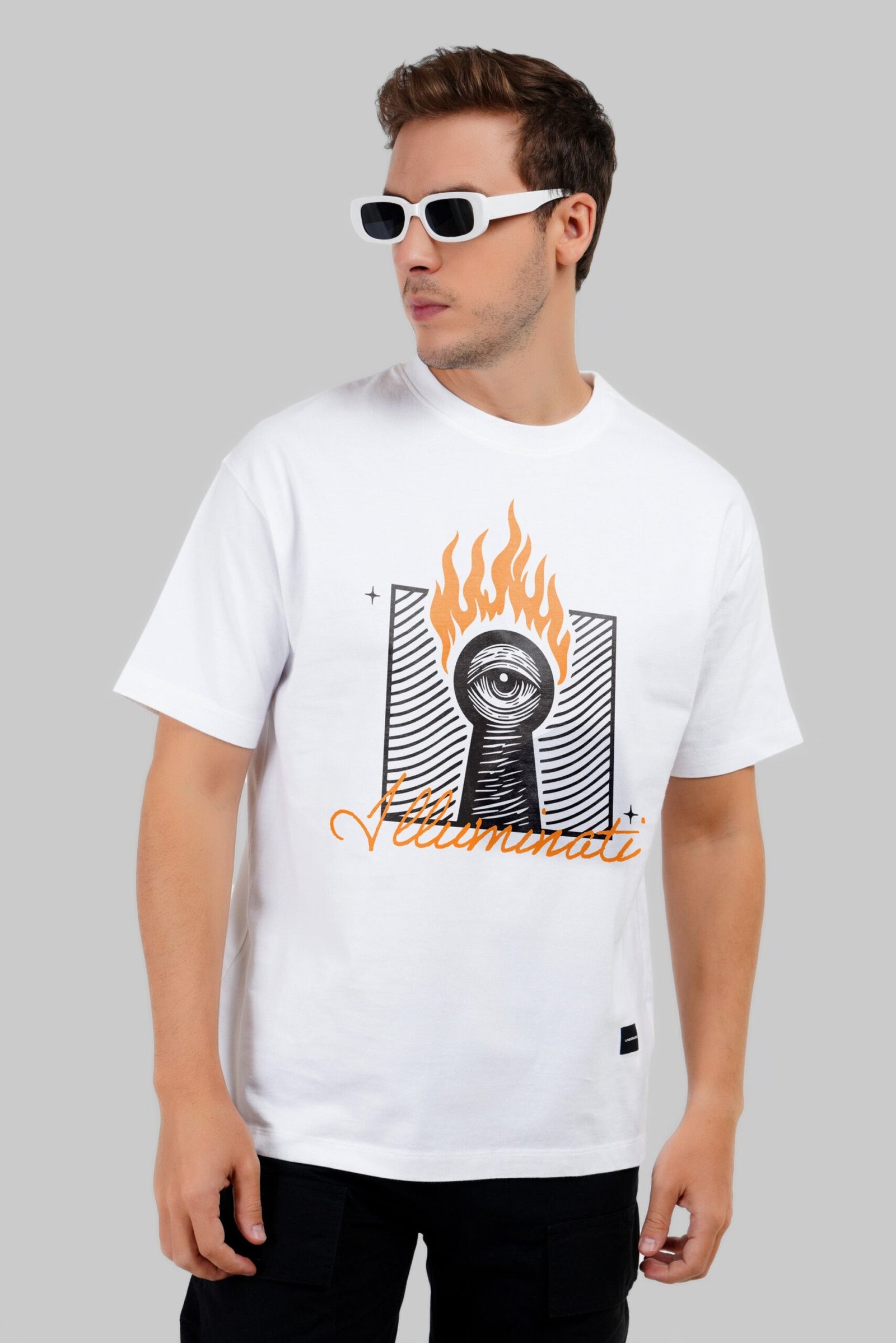 Illuminati Fire White Oversized Fit T-Shirt Men