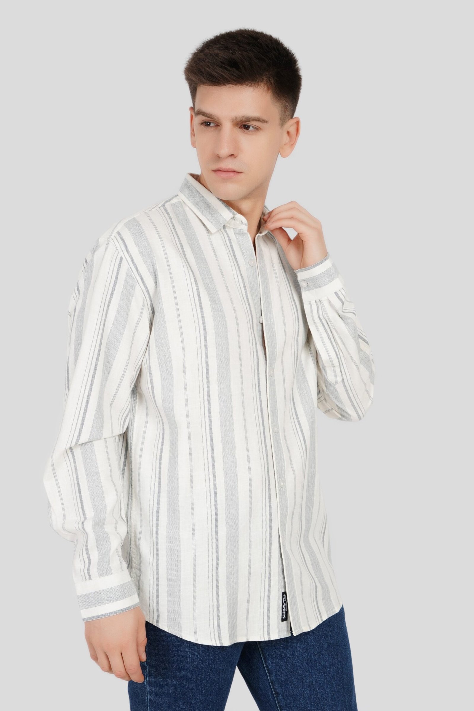 Add a touch of classic charm to your collection with our light grey Full Sleeves Strip Shirt. Crafted from high-quality Oxford fabric, this regular-fit shirt is designed for comfort and durability. The elegant spread collar and grey stripes make it a versatile piece that transitions seamlessly from day to night. Perfect for casual occasions, it pairs well with both jeans and chinos. Whether you’re at a casual get-together or a relaxed office environment, this shirt ensures you stay stylish and comfortable.