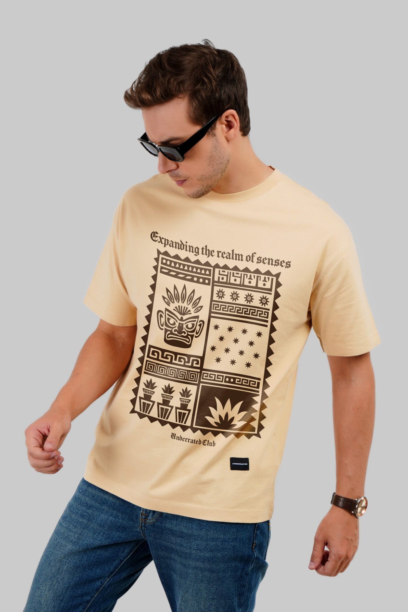 Want to add a comfortable and stylish t-shirt to your collection? This beige oversized t-shirt is a perfect choice, featuring a unique and eye-catching design on the front. With its cool mix of patterns and drawings, it?s a shirt that definitely stands out from the rest. This oversized beige t-shirt is made from soft, high-quality cotton that feels great against your skin, making it ideal for everyday wear. The roomy, oversized fit and dropped shoulders ensure you have a comfortable and relaxed look, while also giving you plenty of room to move freely. Styling this tee is easy. It looks great paired with classic blue jeans and your favorite sneakers for a casual, cool outfit. Get ready to step out in comfort and show off your unique style!