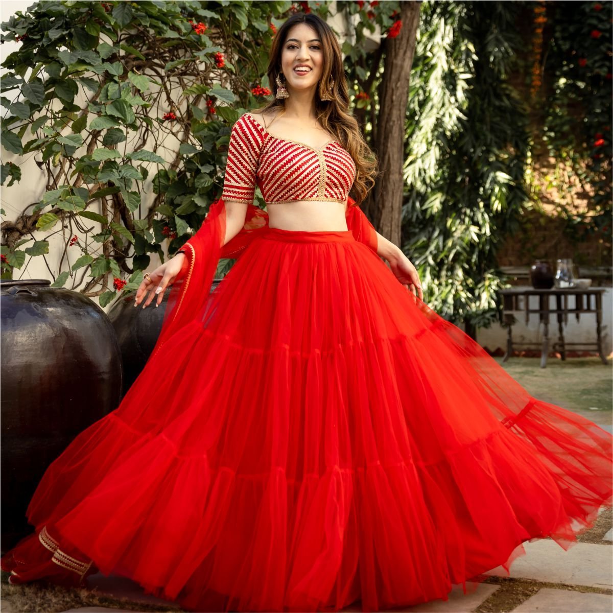 Be the first to review “Red Net Gota Lehenga Set” Cancel reply
