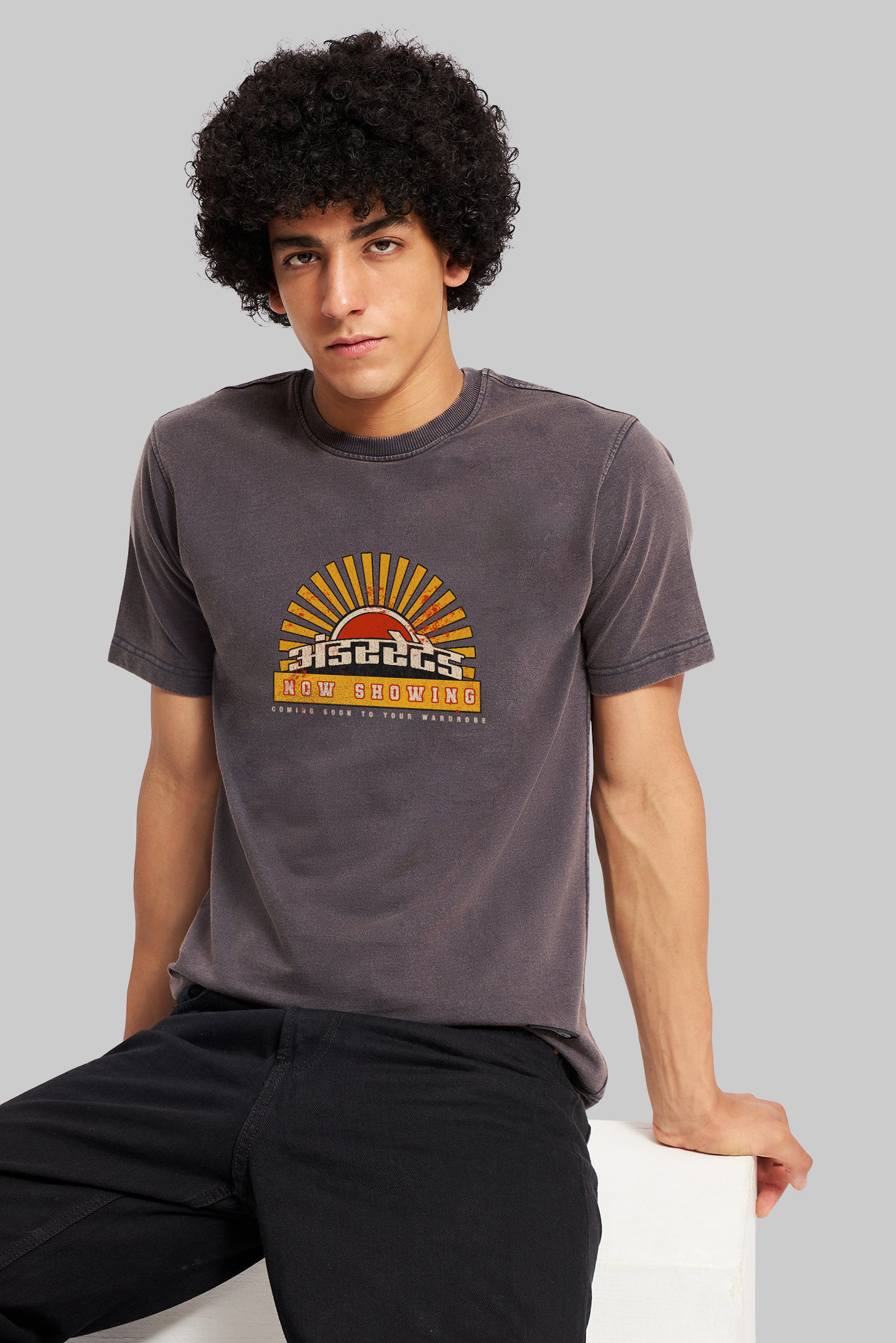 Ever felt like your fit deserves a standing ovation before the day even begins? Enter Showtime – the tee that rolls out red carpet energy in an acid-washed finish. Inspired by vintage cinema posters and local theatre signs, this front-printed banger blends desi nostalgia with streetwear punch. The ?Now Showing? graphic beams like a marquee under the spotlight, casting all eyes on you. Crafted in our signature oversized fit, this one’s got that perfect drop-shoulder ease and lived-in texture you don?t want to take off. The acid-wash grey shade makes every piece subtly unique – no two tees are the same. Style it with: Relaxed cargos or faded denims & let your look do the opening act.