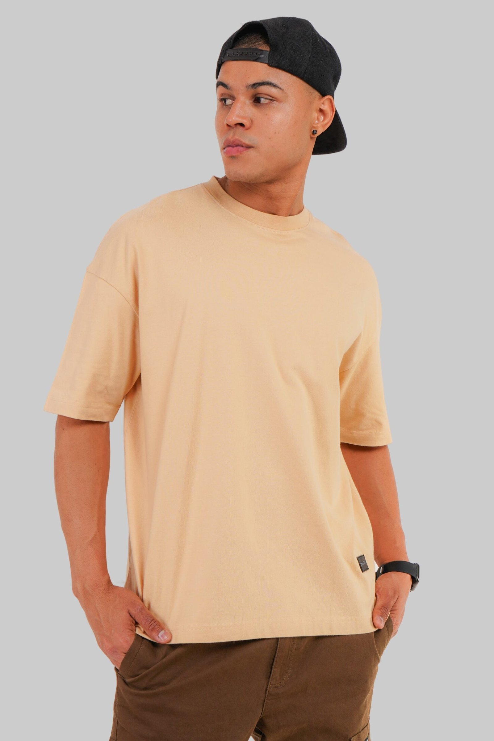 Solid Beige Half Sleeves T-Shirt For Men Baggy Fit