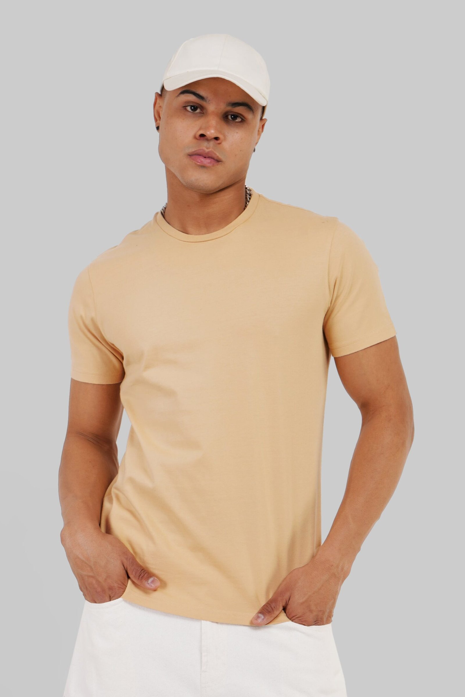 Meet your new champion of comfort: the men’s beige crew neck t-shirt. Made from luxuriously soft cotton, this regular-fit tee offers a relaxed fit that moves and breathes with you. The crew neck adds a touch of polish, making it perfect for both casual wear and layering. The versatile beige color ensures this tee will become a staple in your wardrobe. Upgrade your comfort game with this essential tee.