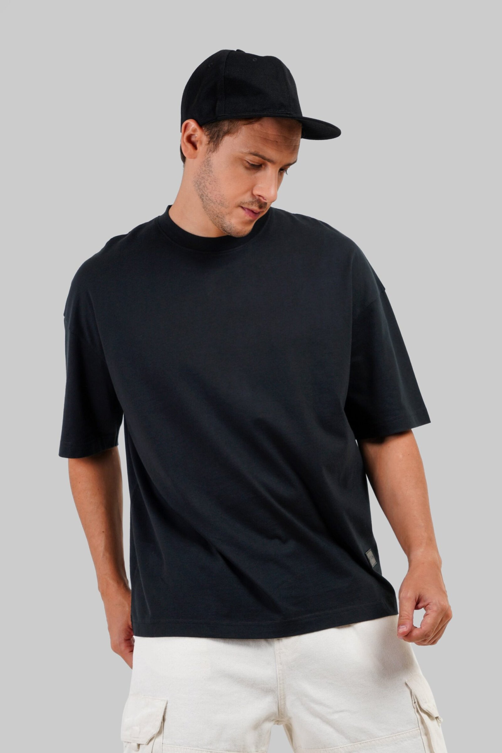 Look good, feel good. This men’s black crew neck t-shirt, crafted from breathable cotton, will become your go-to for everyday comfort. The oversized baggy fit provides a clean, polished look that flatters any body type. Black has a slimming effect and adds a touch of effortless cool. This black tee is more than just a shirt – it’s a confidence booster you can wear anywhere.