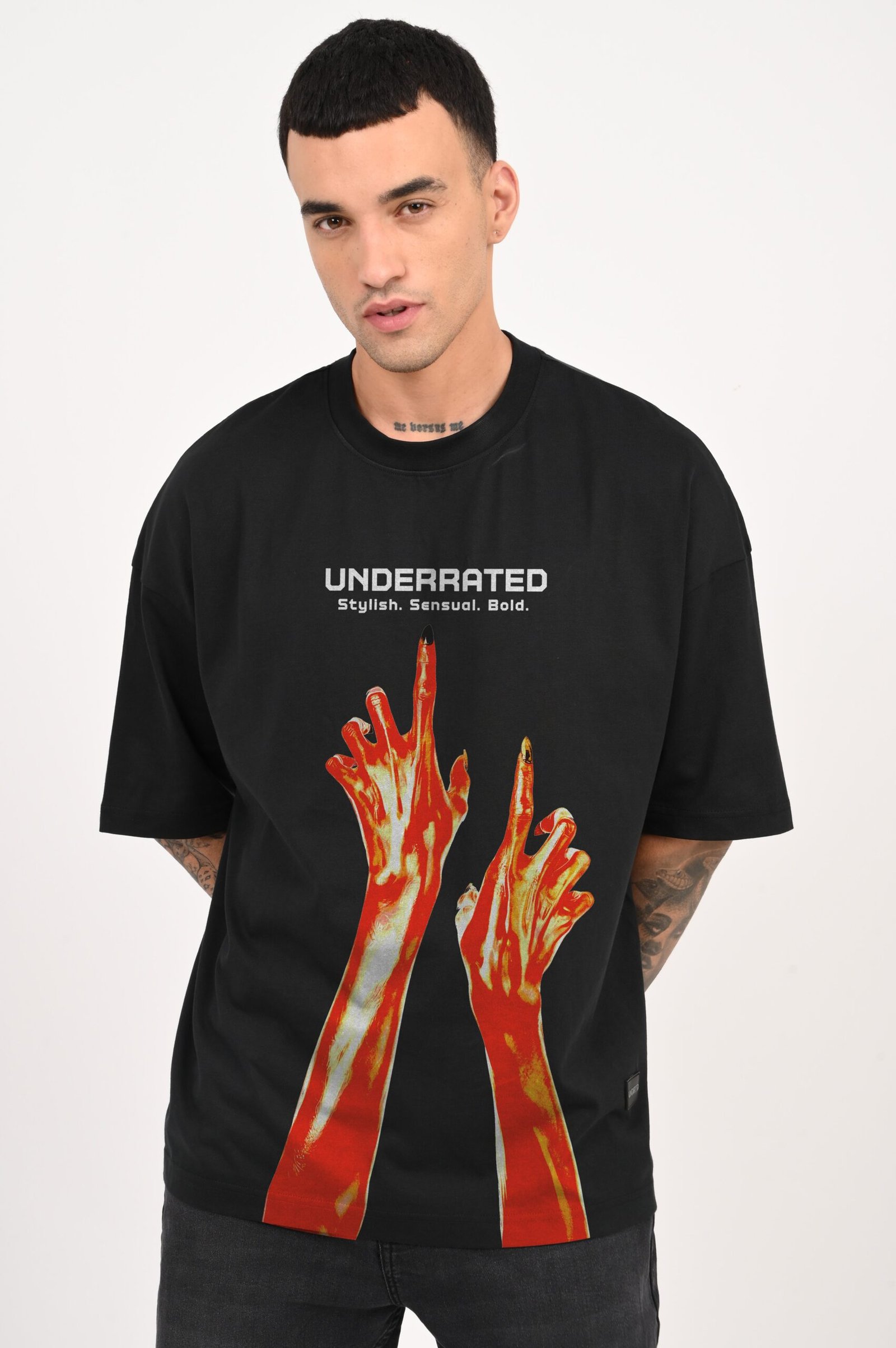 Stylish Sensual Bold Black Baggy Fit T-shirt Men