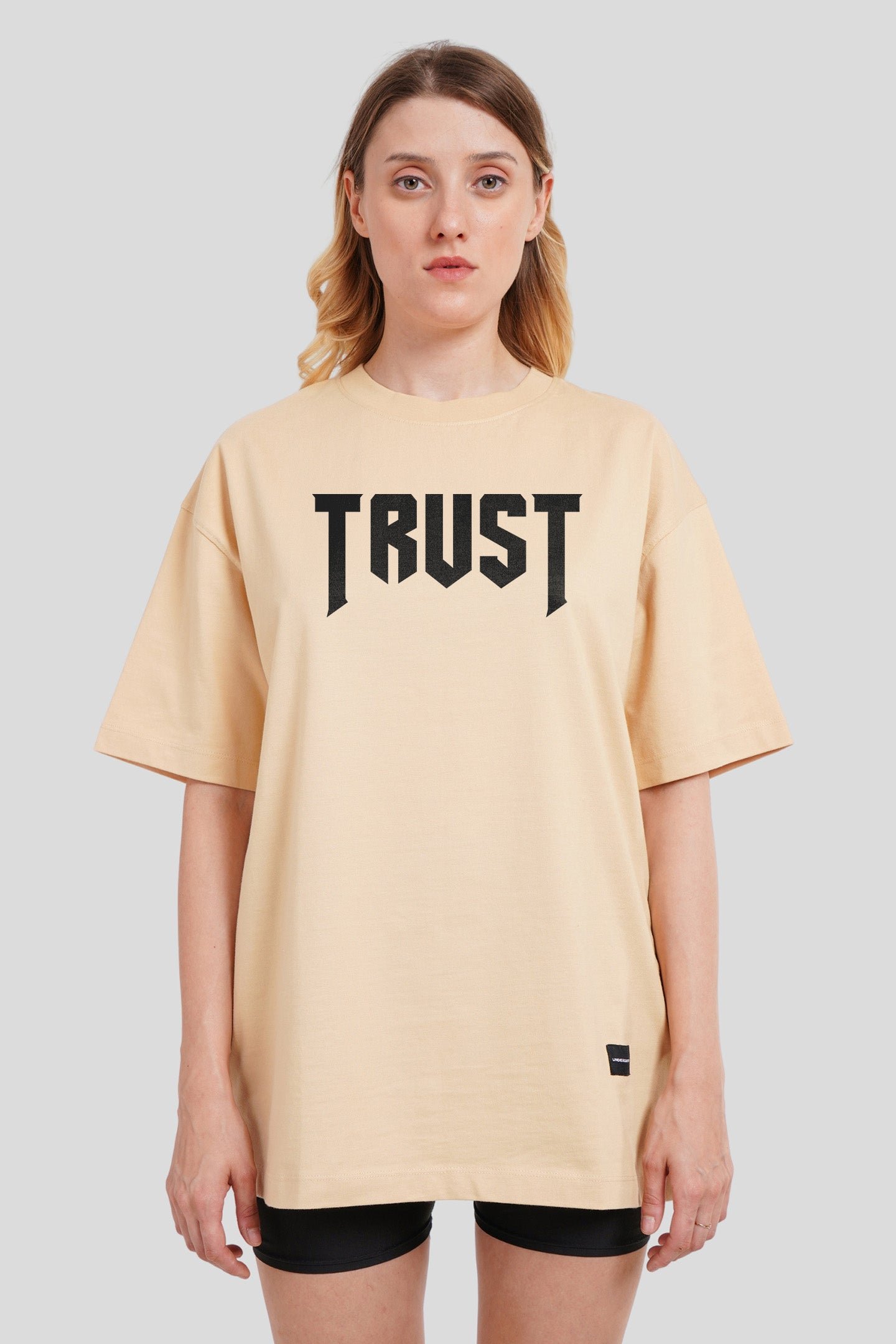 Oversized Fit for Women takes comfort to the next level with this super loose-fit tee. Made with 100% cotton for ultimate breathability, this beige tee boasts a massive “TRUST” graphic, a statement piece for those who like to make an entrance. The super loose fit is all about creating a statement silhouette, perfect for layering and expressing your unique style. It’s streetwear with a capital “S” ? bold, oversized, and ready to turn heads. Feeling like a trendsetter? This tee was made for you. Trust the process, trust yourself, and trust to deliver the streetwear heat.